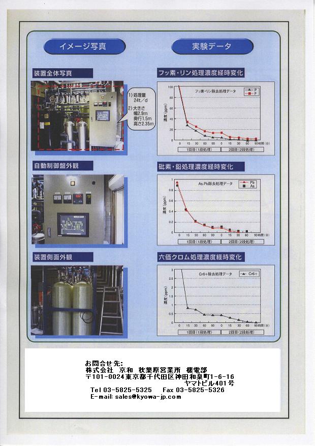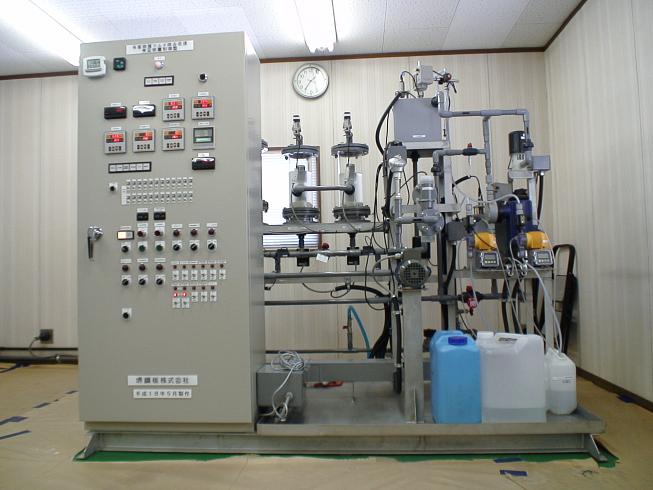 有害物質マルチ除去処理装置(実験機) 及び、温泉排水浄化装置 廃液中のフッ素・ホウ素・リン・六価クロム・砒素・鉛等を同時に除去処理致します。 お見積もりはこちらから ※E-Mailが起動するまで多少時間がかかります。 ※写真をクリックすると拡大されます。 |